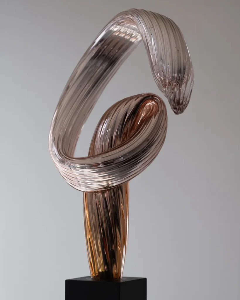 Kaum ein anderer Werkstoff ist so sinnlich wie Glas. Wie glühender Honig wird das dickflüssige Glas aus dem 1100 Grad heißen Ofen entnommen und bearbeitet. Das Material verlangt volle Hingabe und Konzentration.