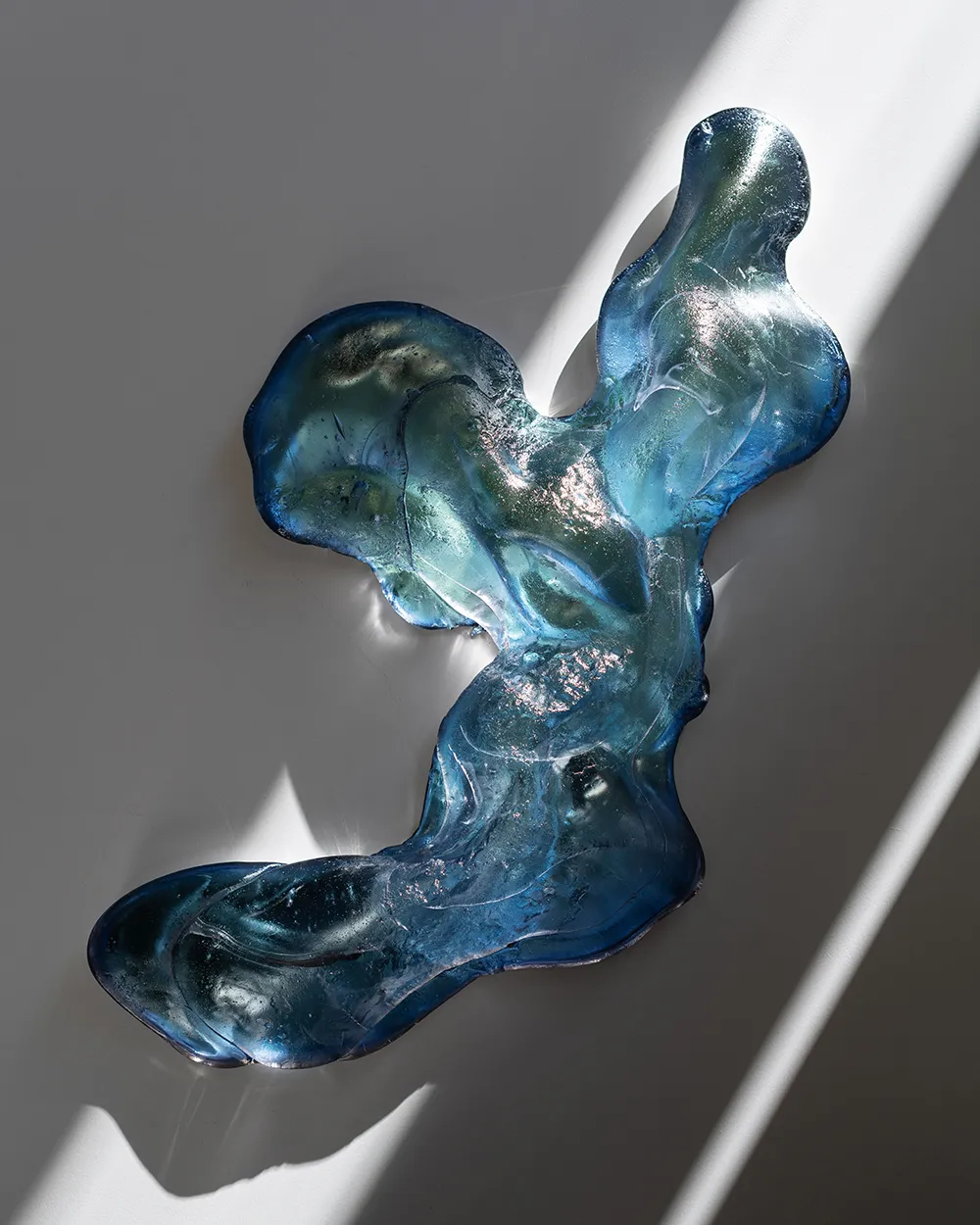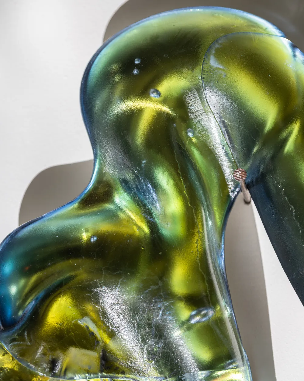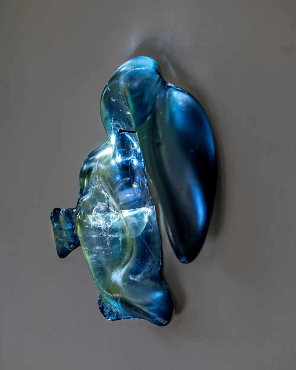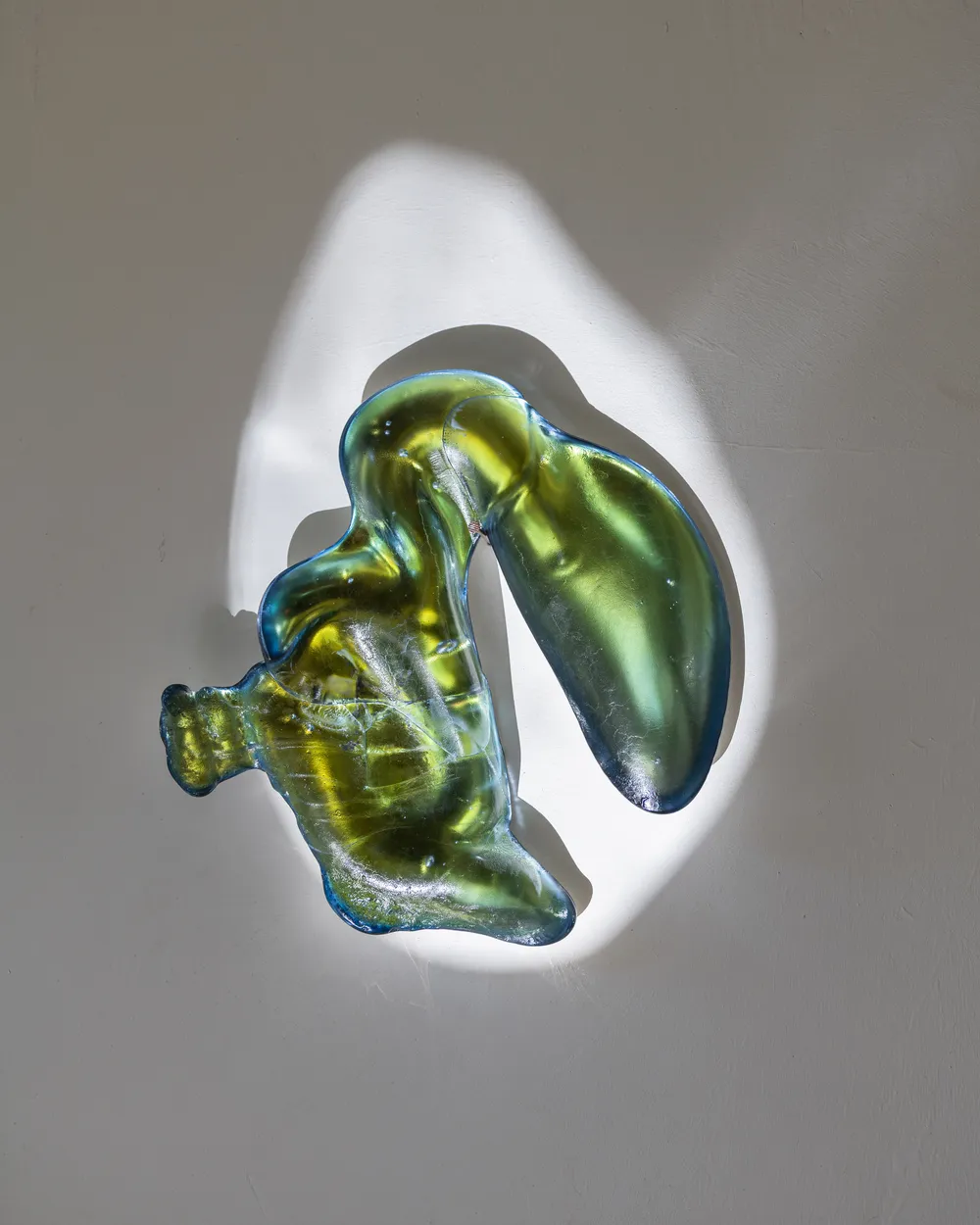 Wenngleich die allermeisten Arbeiten des Künstlers abstrakten Charakter aufweisen, bietet dieses Objekt besonders viel Spielraum zur Interpretation. Inhaltlich und optisch kommt der sprichwörtliche Pudding, der an die Wand genagelt werden soll, in den Sinn. Oder man denkt sich einfach gar nichts dabei und genießt das Farbenspiel der eklektischen Gelb-, Grün- und Blautöne.