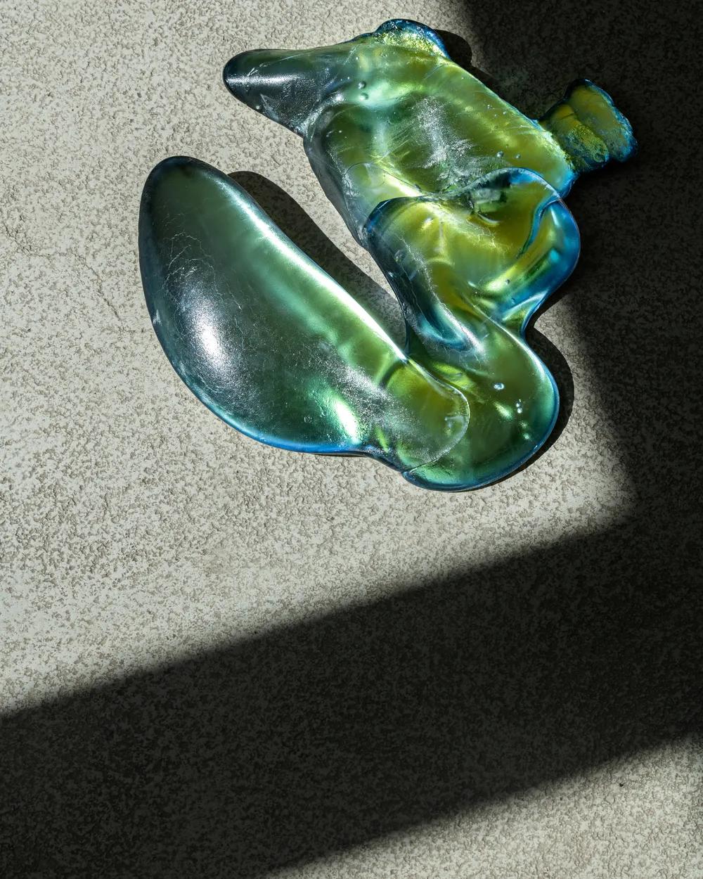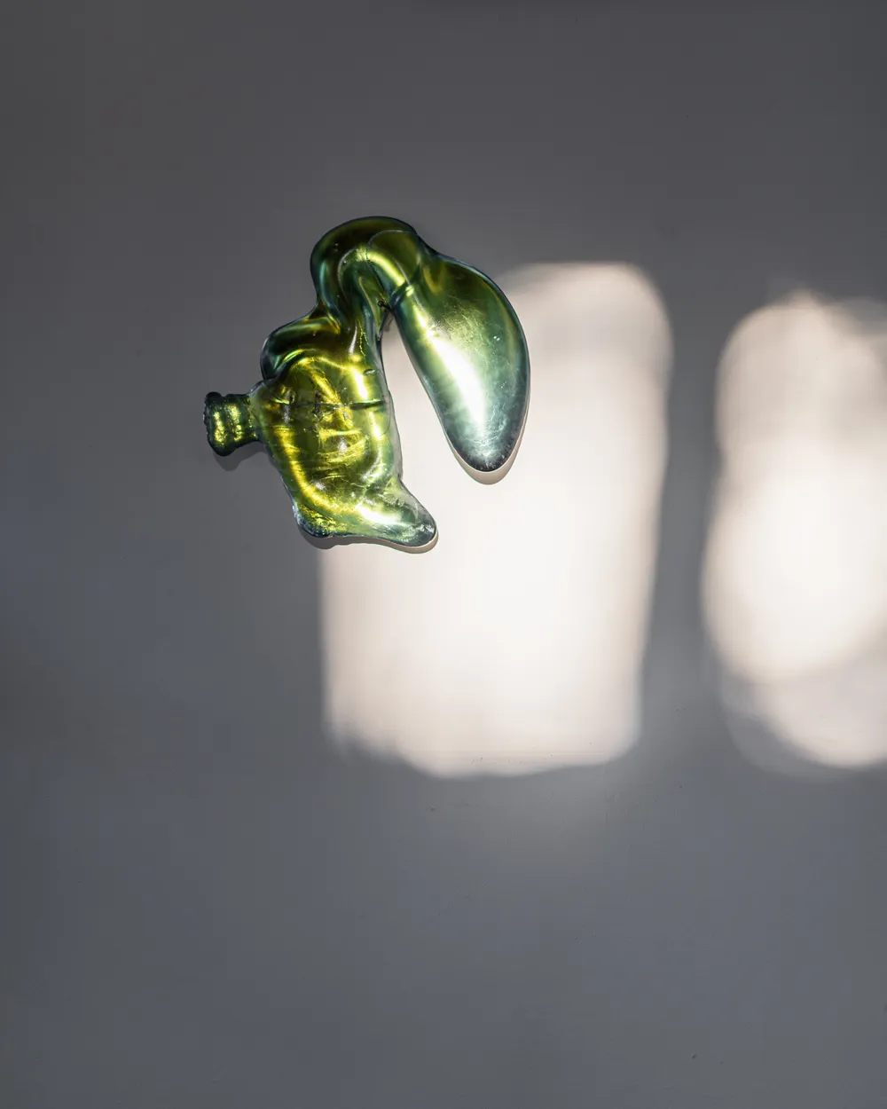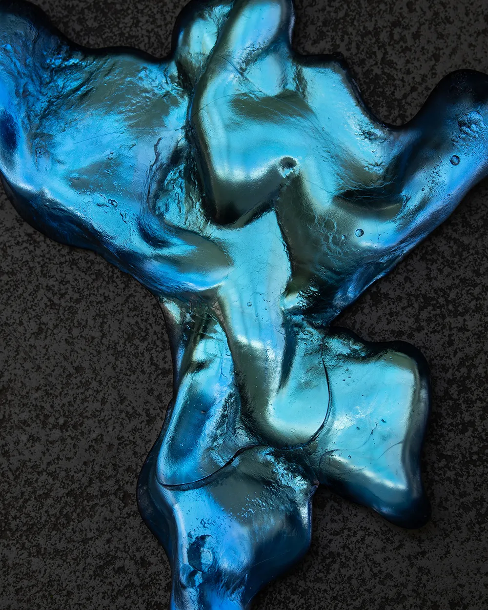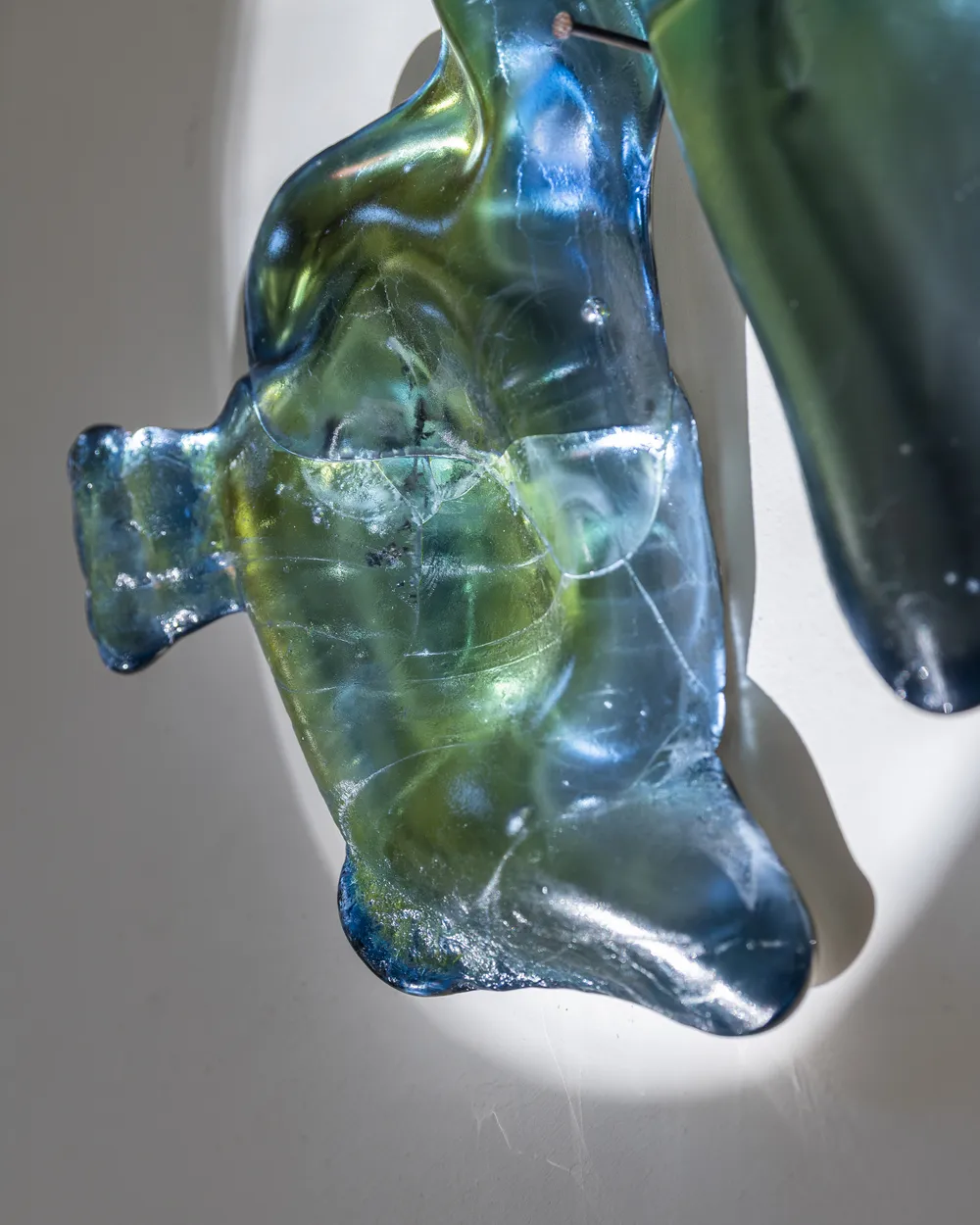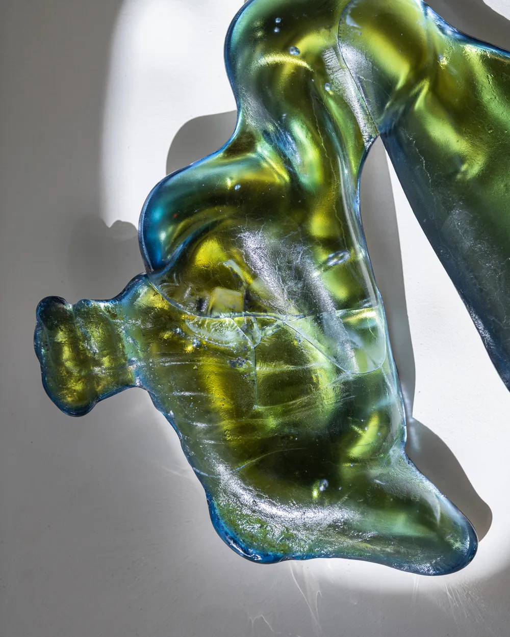 Wenngleich die allermeisten Arbeiten des Künstlers abstrakten Charakter aufweisen, bietet dieses Objekt besonders viel Spielraum zur Interpretation. Inhaltlich und optisch kommt der sprichwörtliche Pudding, der an die Wand genagelt werden soll, in den Sinn. Oder man denkt sich einfach gar nichts dabei und genießt das Farbenspiel der eklektischen Gelb-, Grün- und Blautöne.
