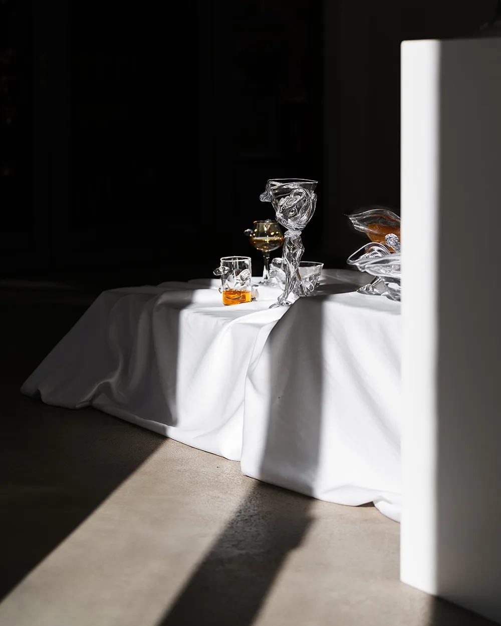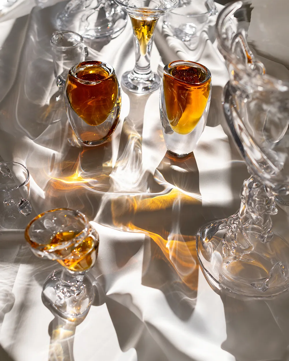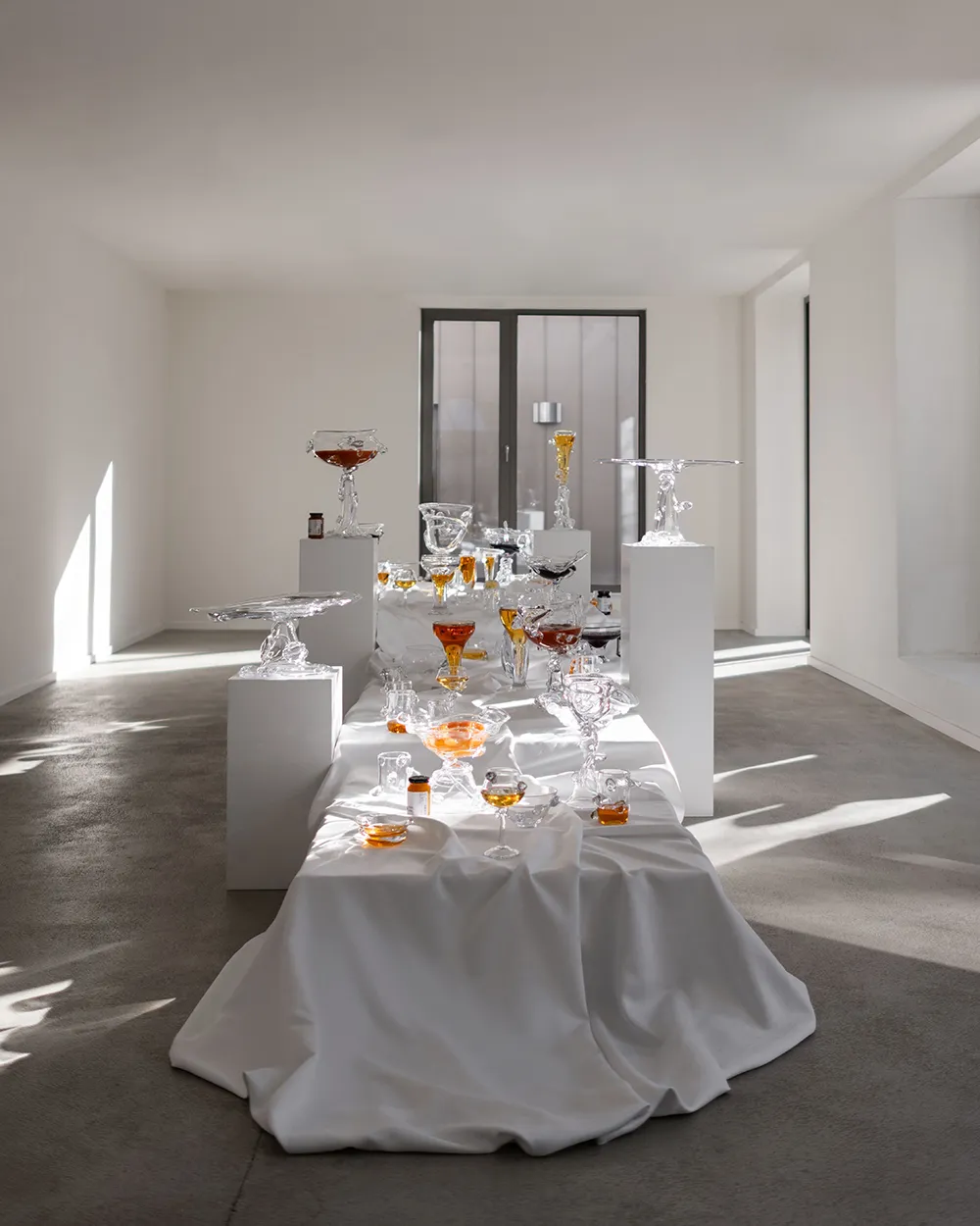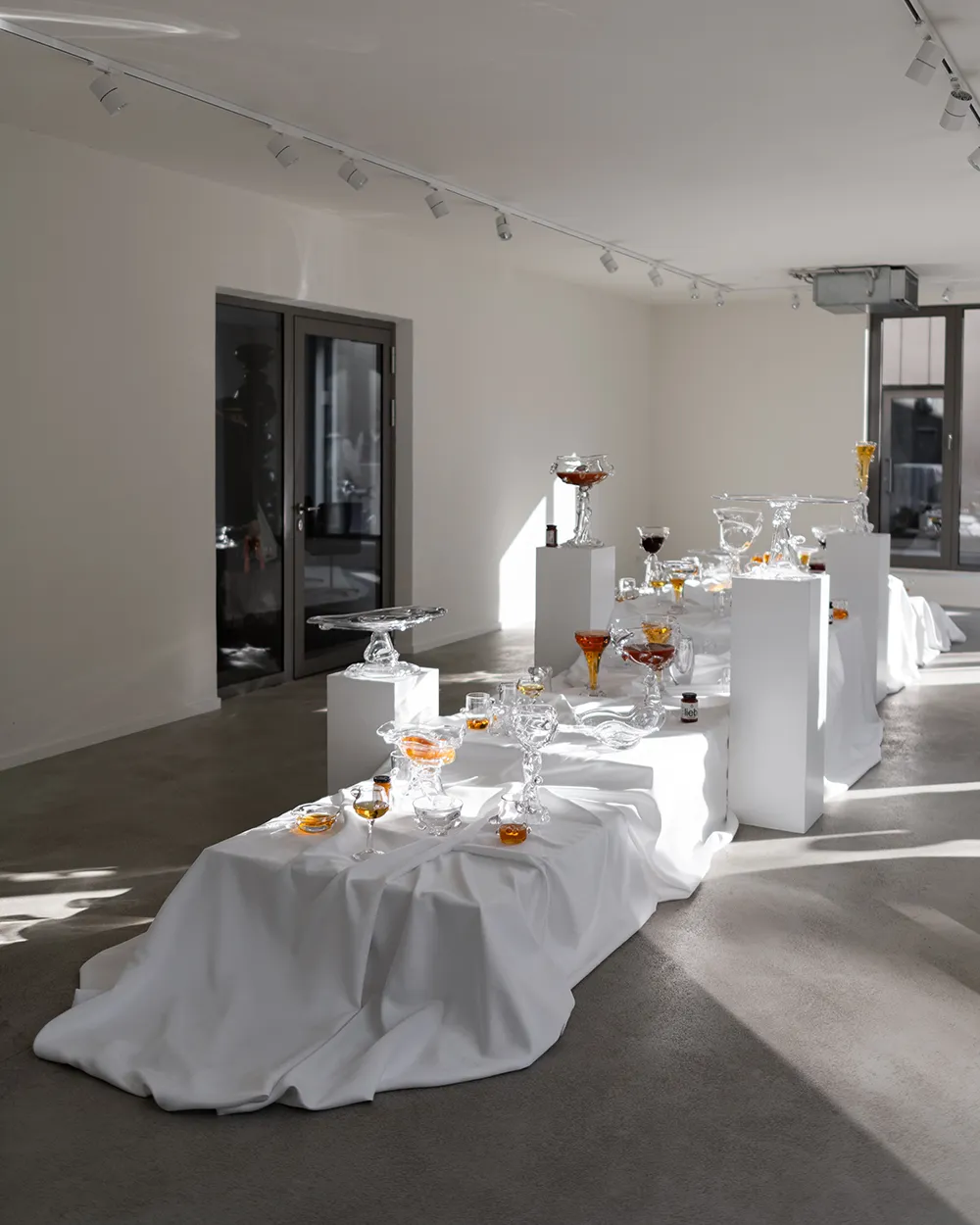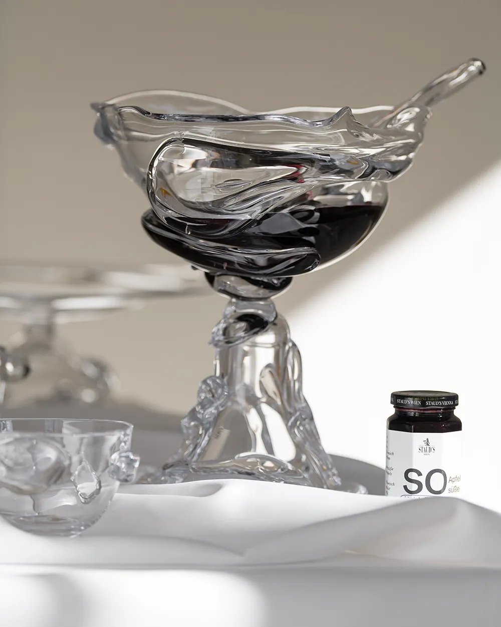 Diese Installation entstand im Auftrag des Wiener Marmeladenproduzenten Staud’s. Gefertigt wurden Gefäße, die honigartige, pardon: marmeladeartige Substanzen in sich tragen. Die wilde Formensprache der Objekte fungiert als Gegenpol zum süßen Inhalt. Inszeniert wurden sie als Arrangements auf einer Tafel im Zuge einer Produktpräsentation im März 2025.